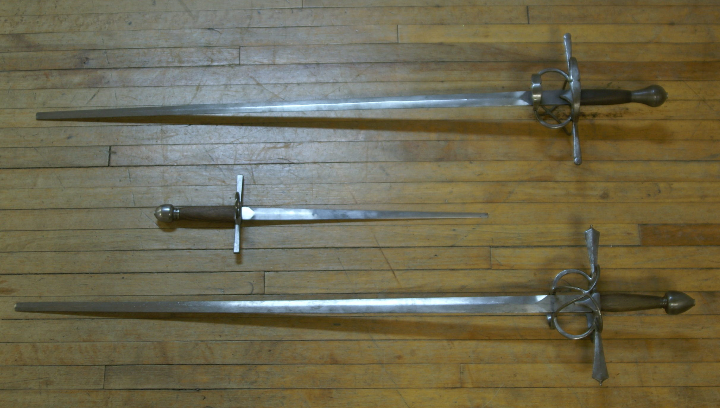 We also use wooden and plastic wasters, and blunted steel for a variety of drills. Drilling with wasters and blunt steel helps us to better understand force transfer and points of percussion with all of our training tools.